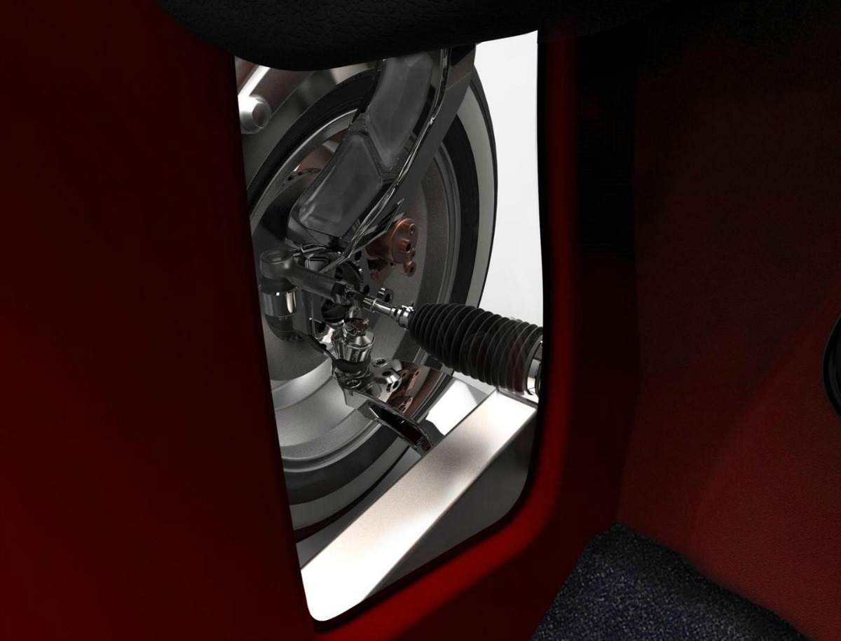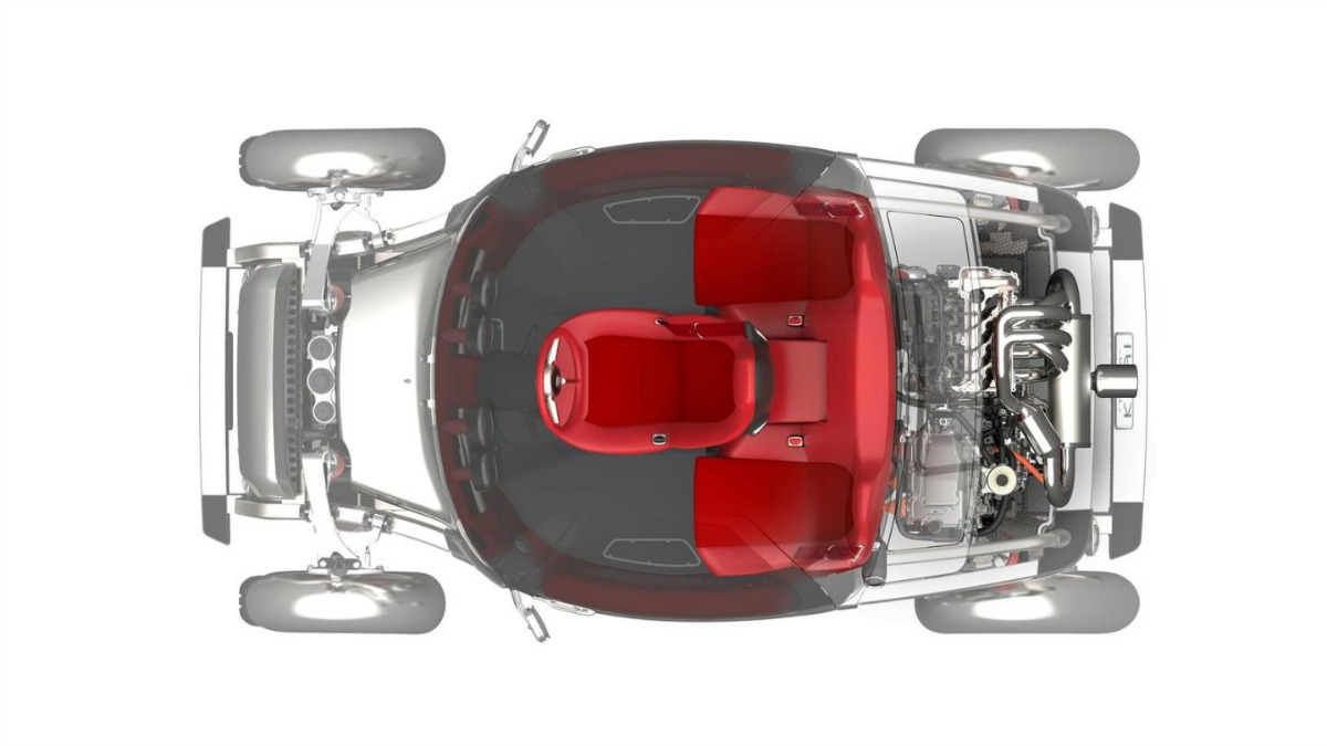Un habitáculo por otra parte un tanto peculiar, como todo el coche vamos. Cuenta con tres plazas, situando la del conductor en el centro y las otras dos a los lados y retrasadas. Su forma es como una burbuja con grandes ventanales que permiten apreciar el paisaje y como ya se ha comentado, el funcionamiento de los componentes mecánicos.